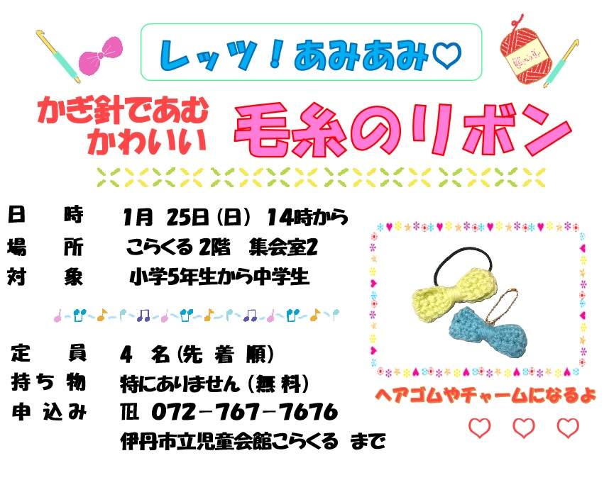 1月25日(日)開催「レッツ!あみあみ ♡ 毛糸のリボン」