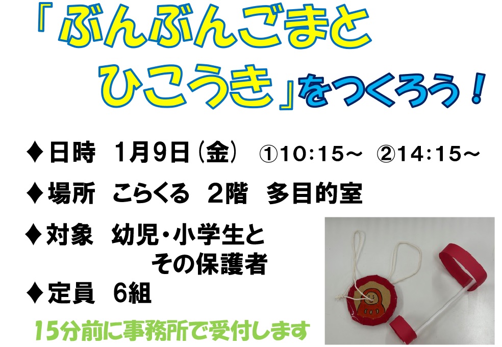 1月9日(金)開催「ぶんぶんごまと ひこうきを作ろう!」