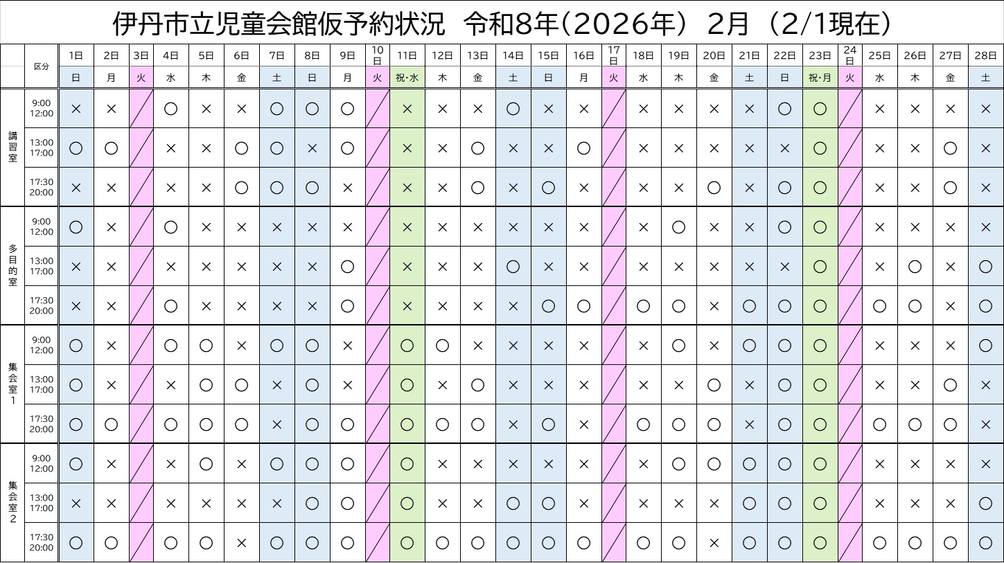 ※ 2026年2月1日現在の予約状況です。 ホームページの更新は、リアルタイムではございません。 予めご了承ください。 次回の更新は、2月15日を予定しております。・・・