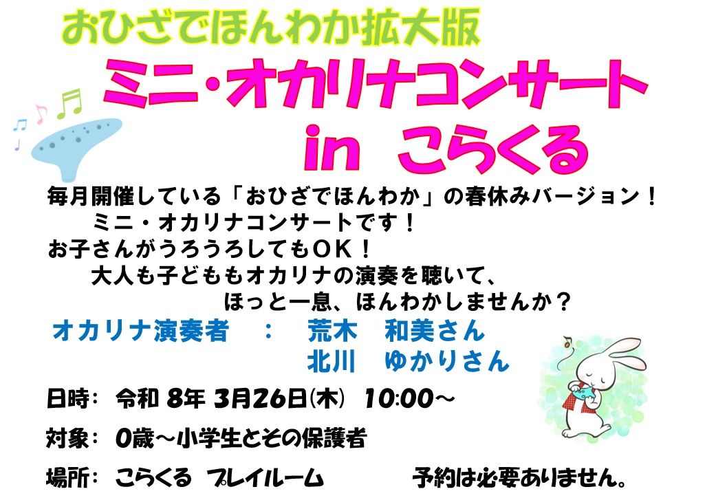 3月26日(木)開催「ミニ・オカリナコンサート in こらくる」