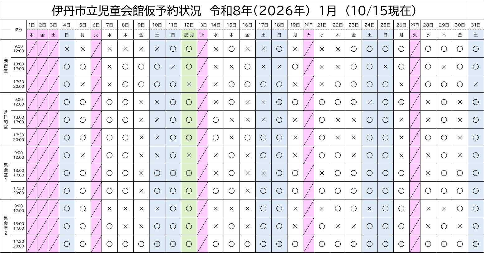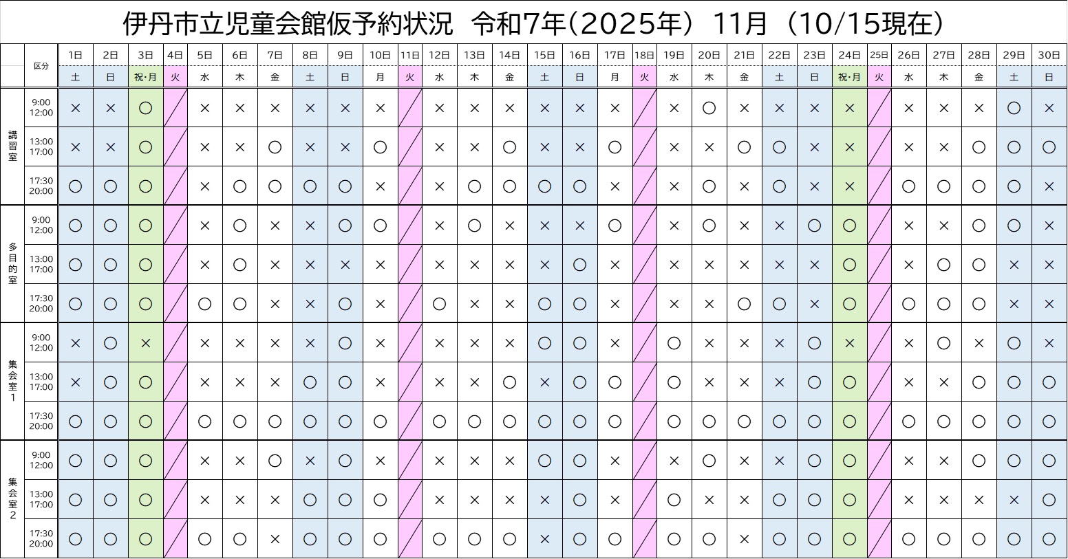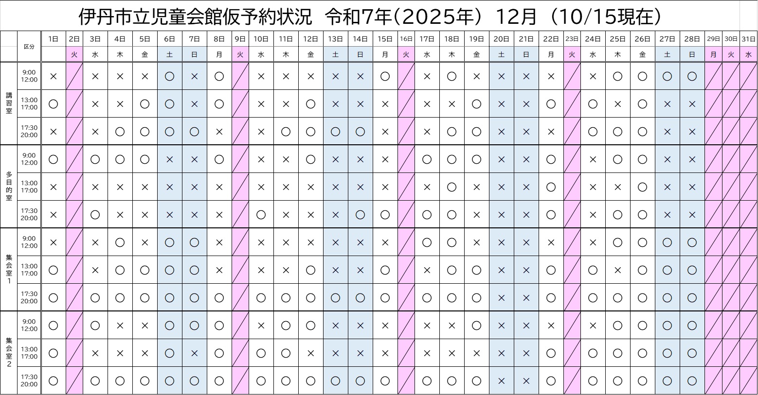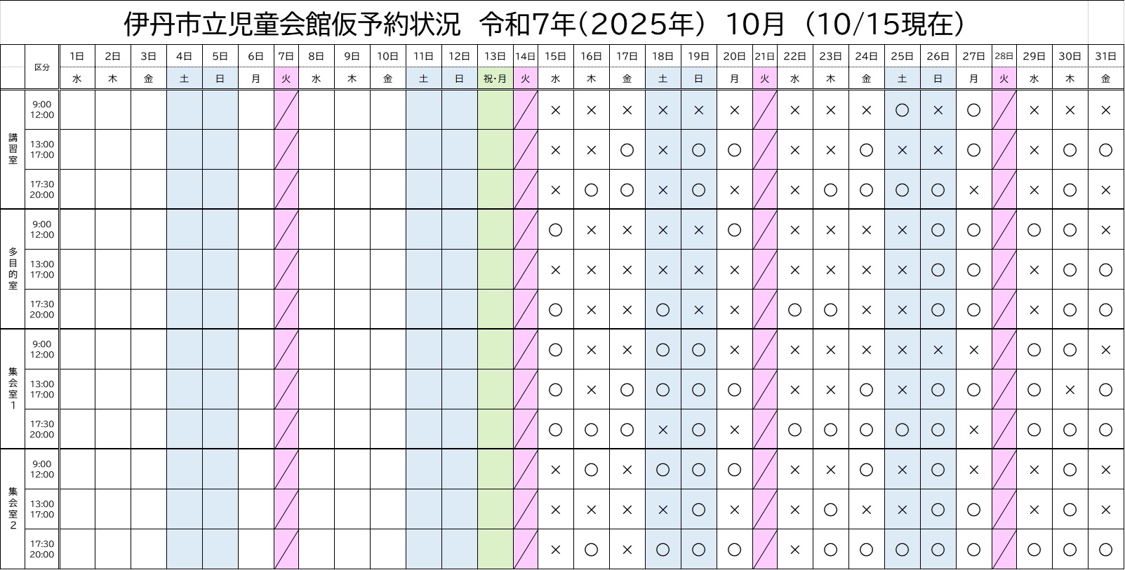 ※ 2025年10月15日現在の予約状況です。