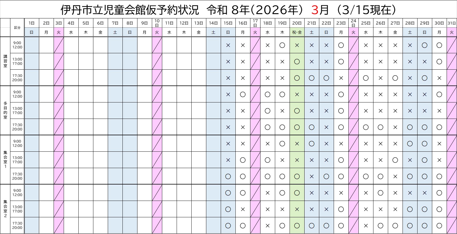 ※ 2026年3月15日現在の予約状況です。
